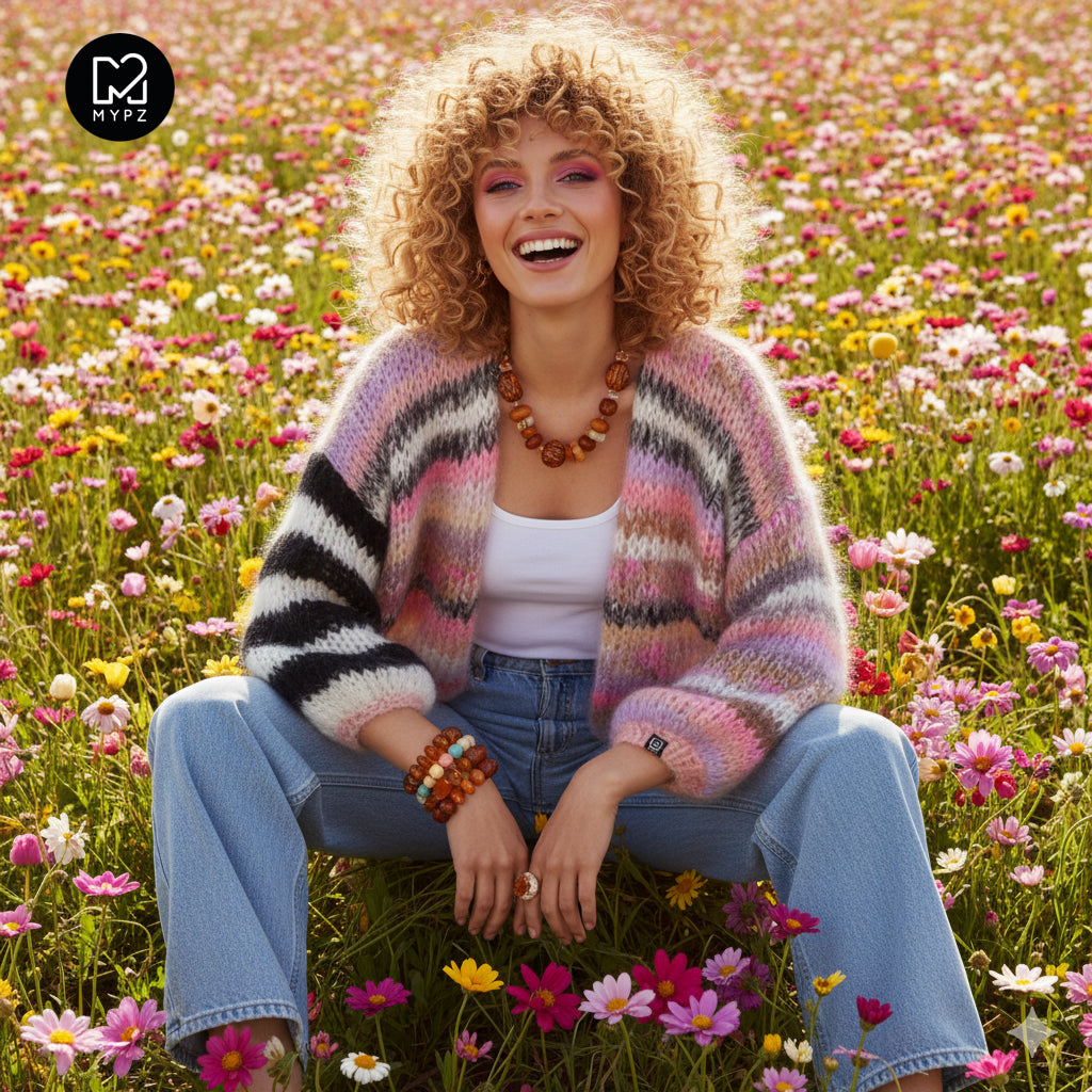 HANDMADE WITH LOVE BY MYPZ | This is a unique handmade luxury mohair cardigan. This beautiful cardigan is made of a high quality kidmohair and does not pill. It is very light, warm and comfortable. These brushed yarns may shed a little but after the first or two washes, this will subside.