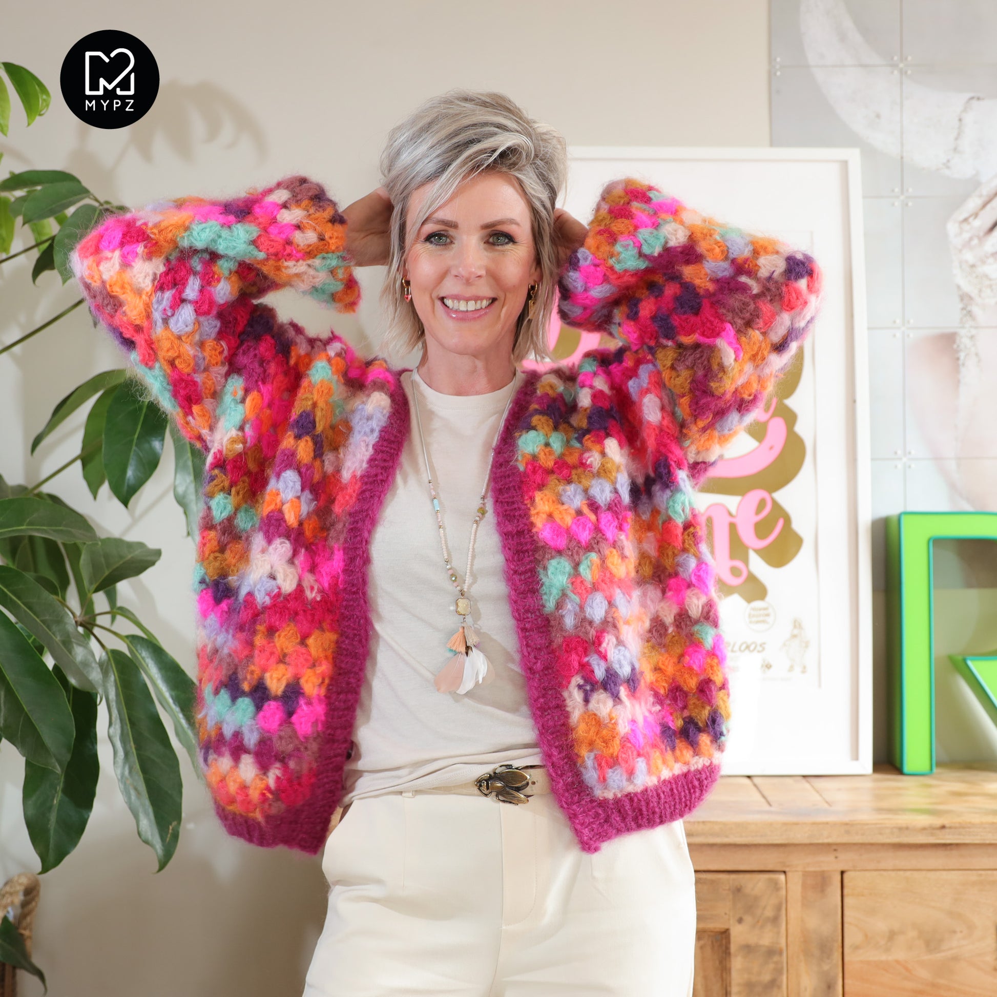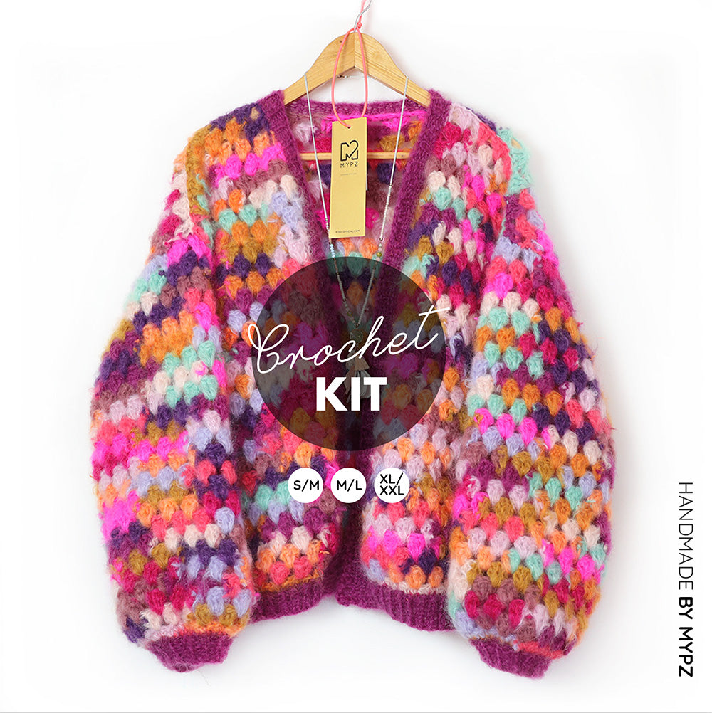 Crochet kit - MYPZ Short Mohair Granny stripes cardigan Desire (ENG-NL)