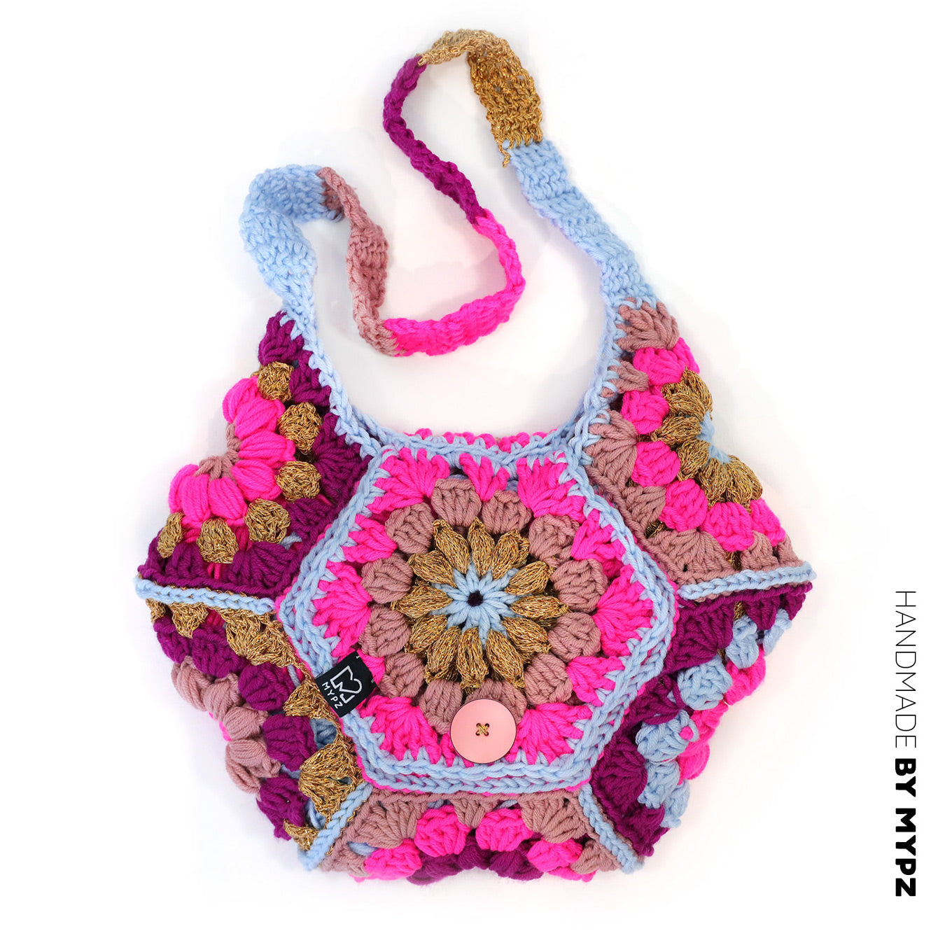 Du häkelst diese Tasche mit 1 Knäuel MYPZ Super Soft Merino DK. Manchmal verwendest du Durable Glam Gold.