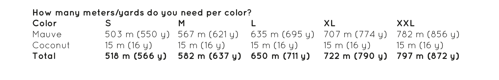 Wie viel Garn benötigen Sie insgesamt basierend auf den Farben im Bild für Größe S & M (L & XL, XXL):