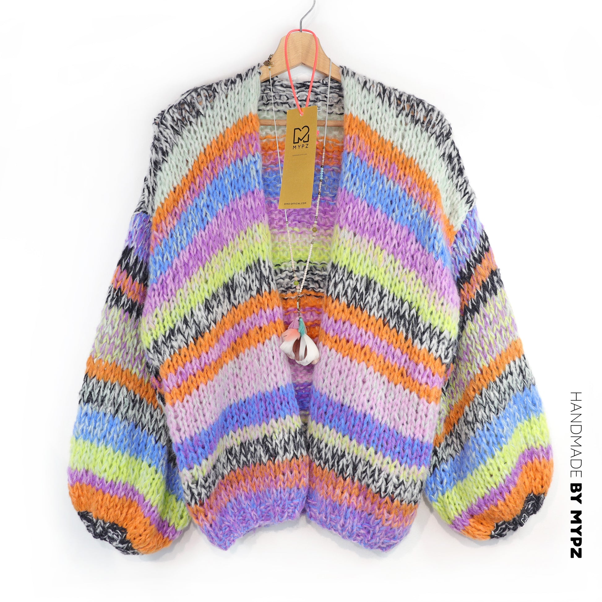 The Crystal Cardigan no10 is knitted using 1 strand of MYPZ Chunky Kidmohair DK.