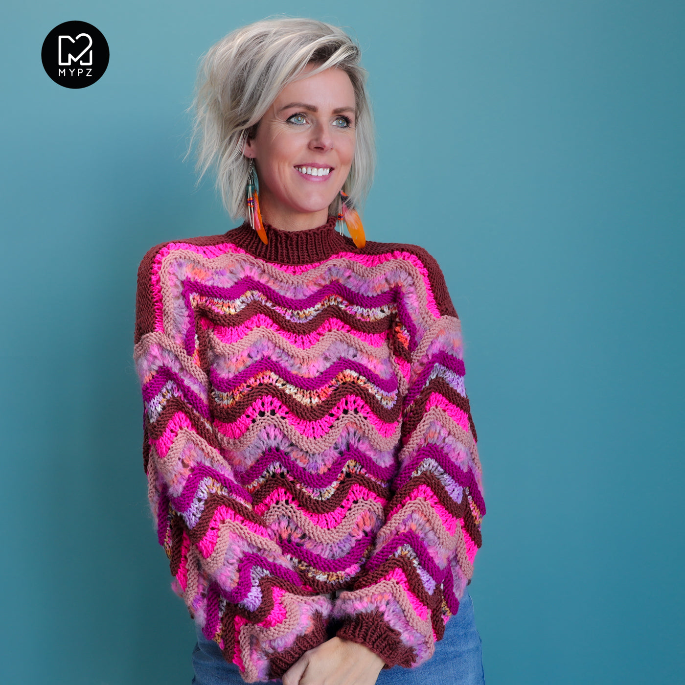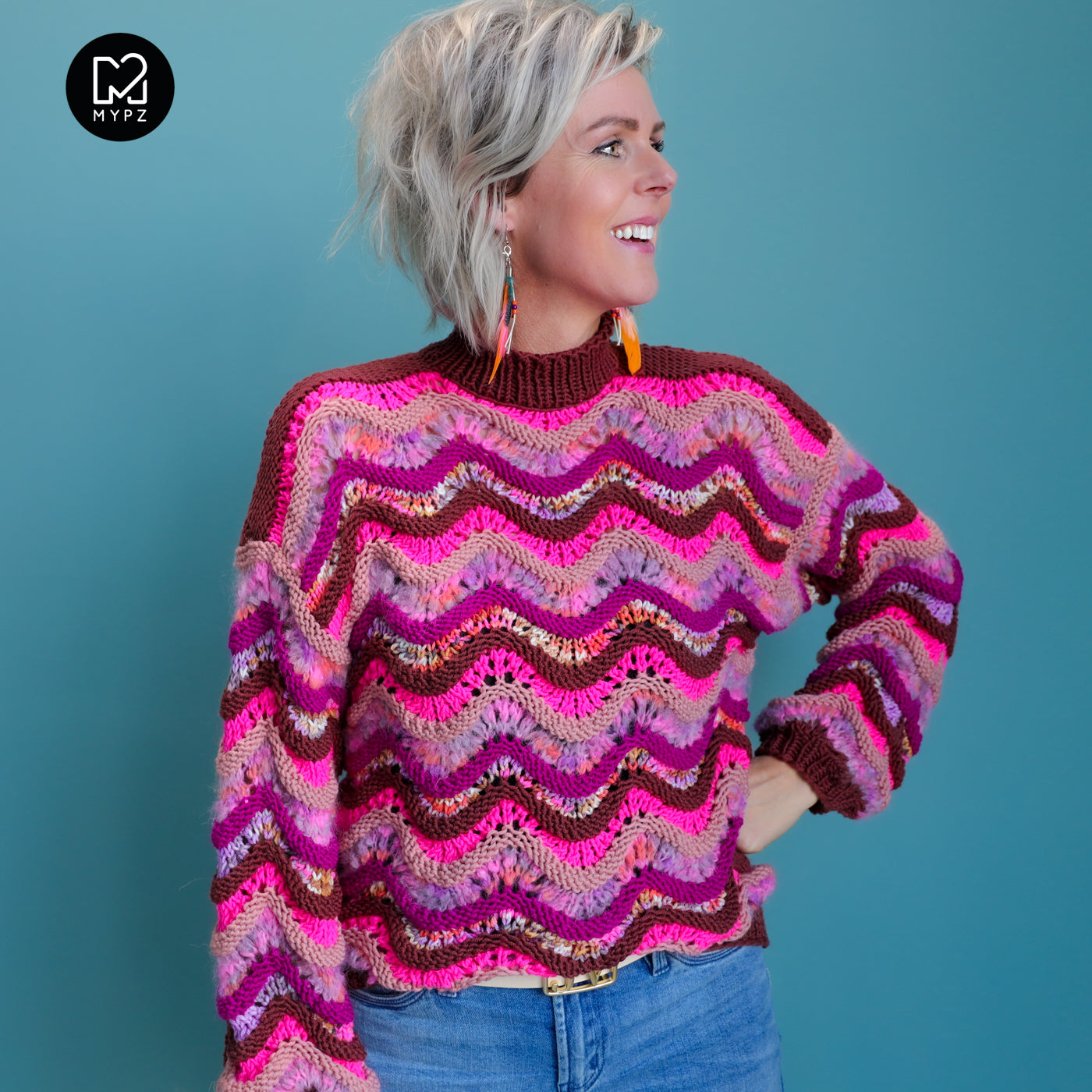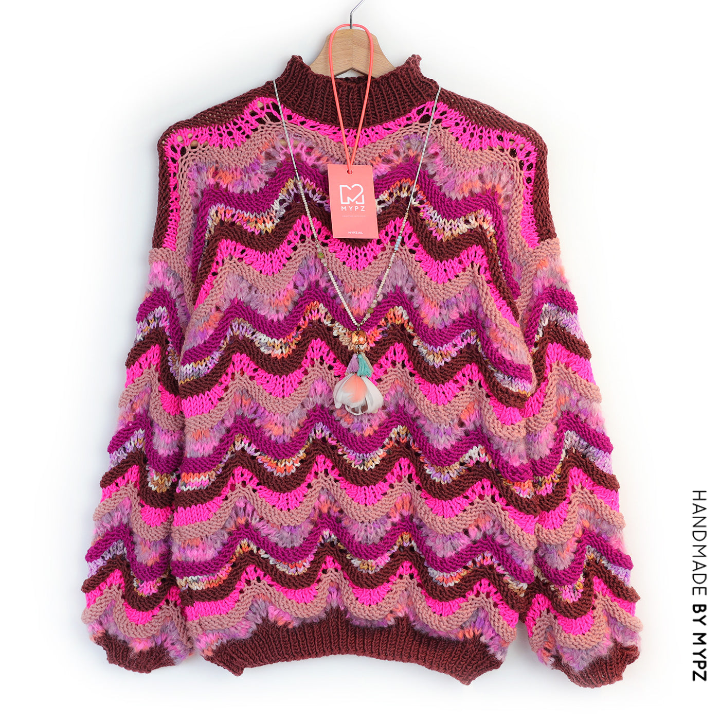 This is a handmade knit made by MYPZ in The Netherlands. Each cardigan or sweater is a unique piece and we take a lot of time and care to create these beautiful products. This sweater has a regular/slim fit. The stitch is very stretchy and will therefore easily stretch 10 cm.